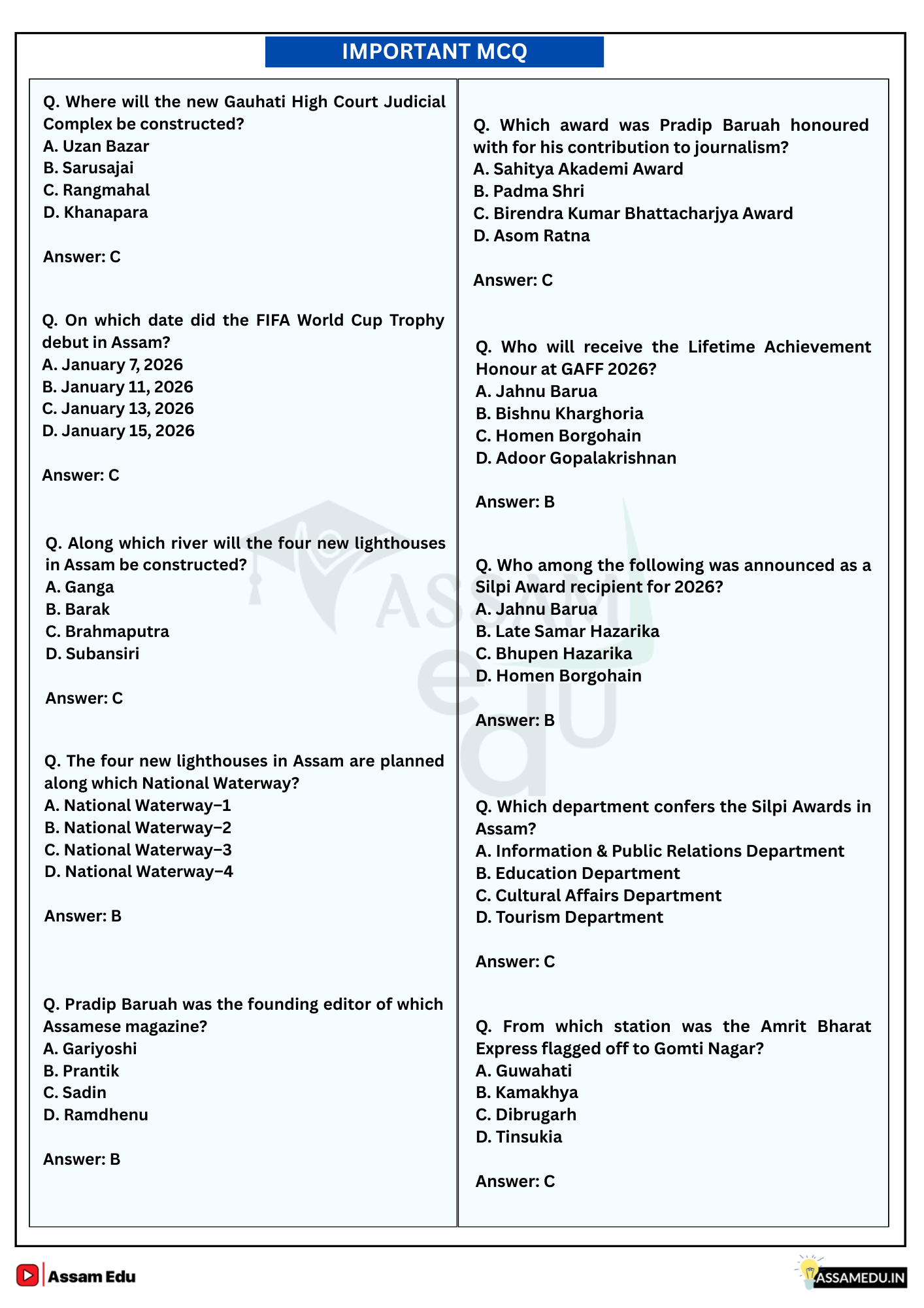 In summary, the “Assam Current Affairs E-Book” by Assam Edu is an essential addition to your study materials. With its focus on current events and detailed MCQs, it provides a solid foundation for your competitive exam preparation. Download the Assam Current Affairs PDF today and ensure you are well-prepared for any questions related to Assam Current Affairs 2025.