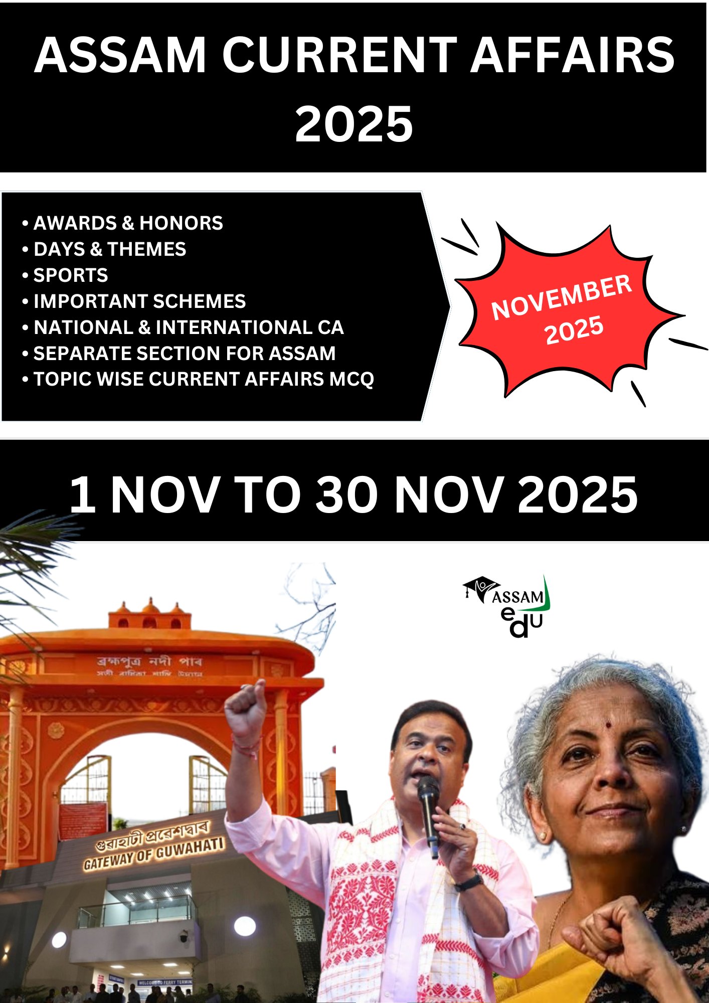 10th Edition (October 2025) : • In The 9th Addition of Assam Current Affairs E Book By Assam Edu We have updated the current Affairs for the month of July and August and Updated the required Data. • Updated Current Affairs for August and September. • Covers all National, International, and Regional topics with special focus on Assam. • Included coverage on the demise of Assam’s legendary singer Zubeen Garg, new Vice President appointment, and other key updates. • Data and facts thoroughly revised and updated for accuracy. |