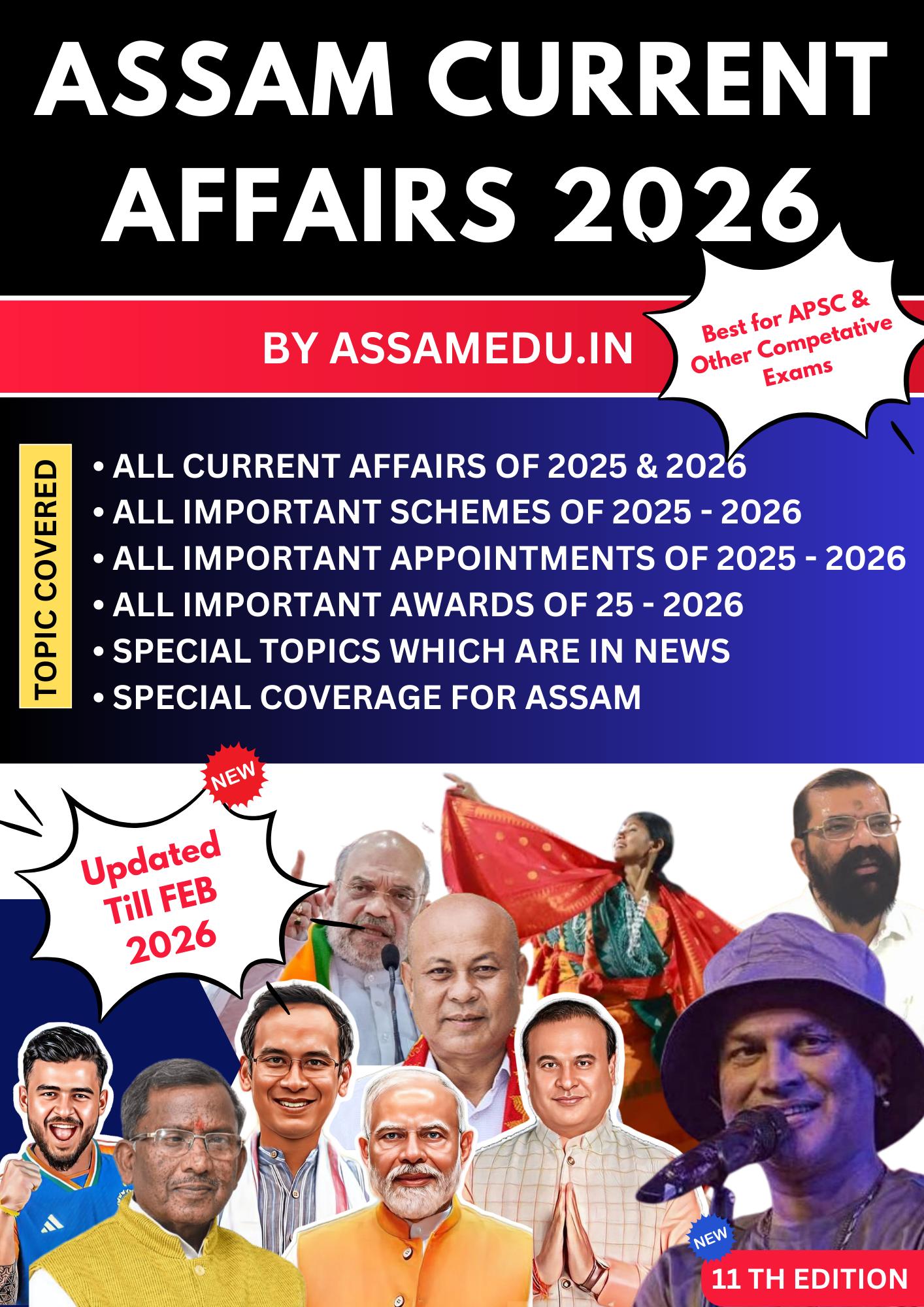 Assam Current Affairs 2026 : We are excited to introduce the “Assam Current Affairs E-Book : 11th Edition(Feb 2026)” by Assam Edu, a comprehensive resource designed to support your preparation for competitive exams. In today’s exam landscape, particularly for APSC, ADRE, Assam Police SI, and APDCL, questions related to Assam Current Affairs are increasingly common. Typically, 8-10 questions from this section appear in these exams, making it crucial for candidates to stay updated.